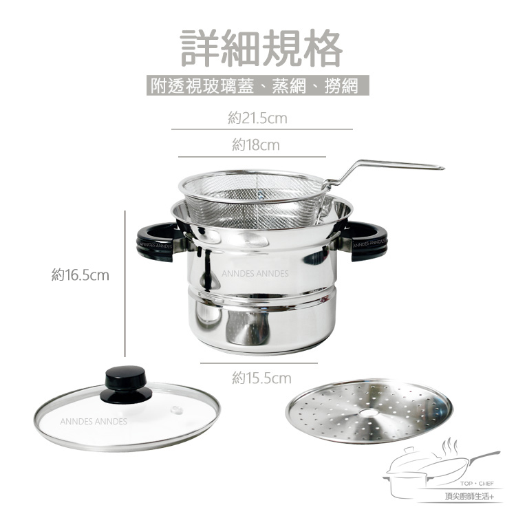 配件:鍋蓋x1 蒸盤x1 撈麵網x1
