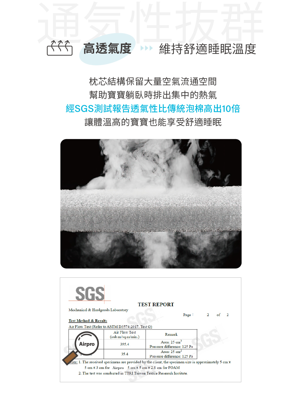 (2)枕頭/睡墊(表布:100%棉;中層:100%聚酯纖維;芯材: 100%聚烯烴彈性體)