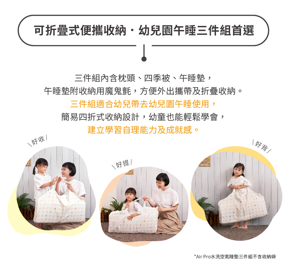 內容物:睡墊三件組(枕頭(平枕)+四季被+睡墊)