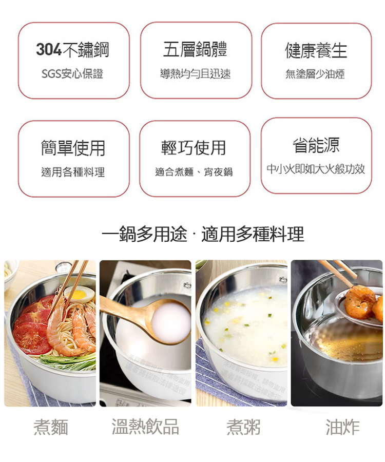 鍋身材質:304不鏽鋼、不鏽鋼複合金