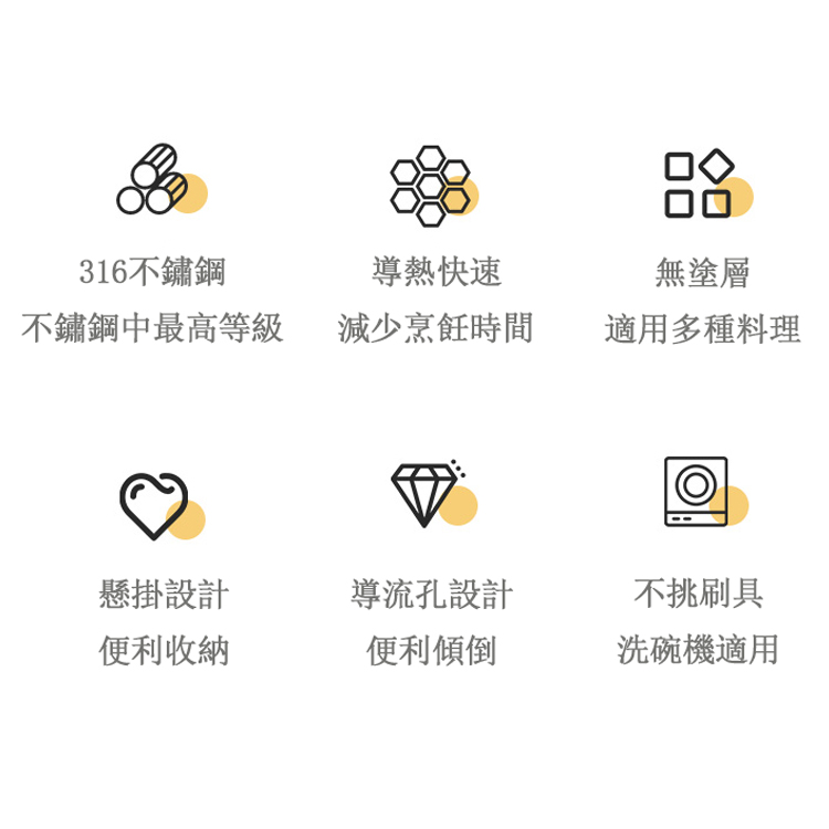 8.本產品無化學塗層,經烹調、刷洗等因物體間摩擦進而產生使用過的痕跡(刮痕)為正常現象,請安心使用。