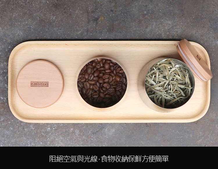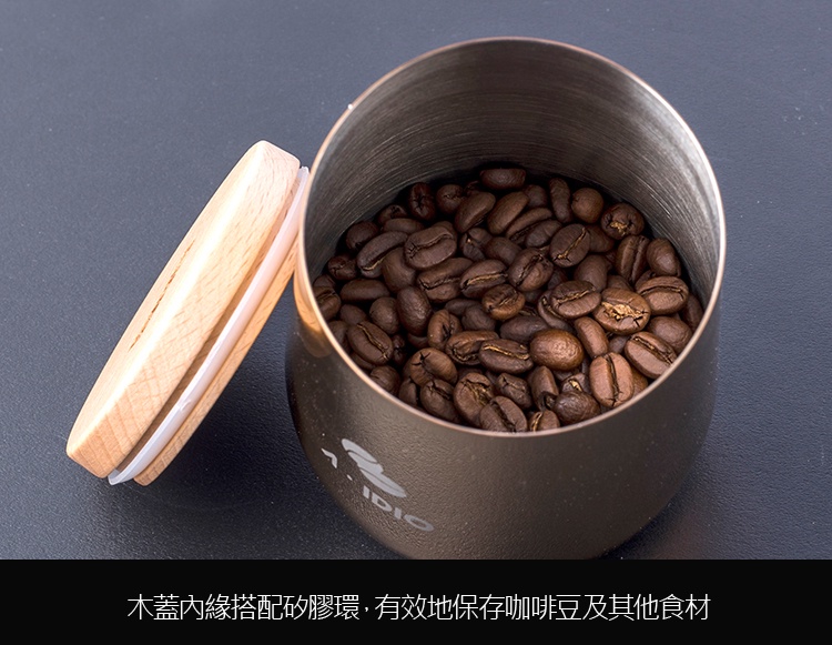 搭配溫潤木蓋。可以阻絕空氣與光線,有效地保存咖啡豆及其他食材