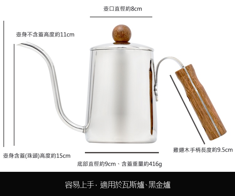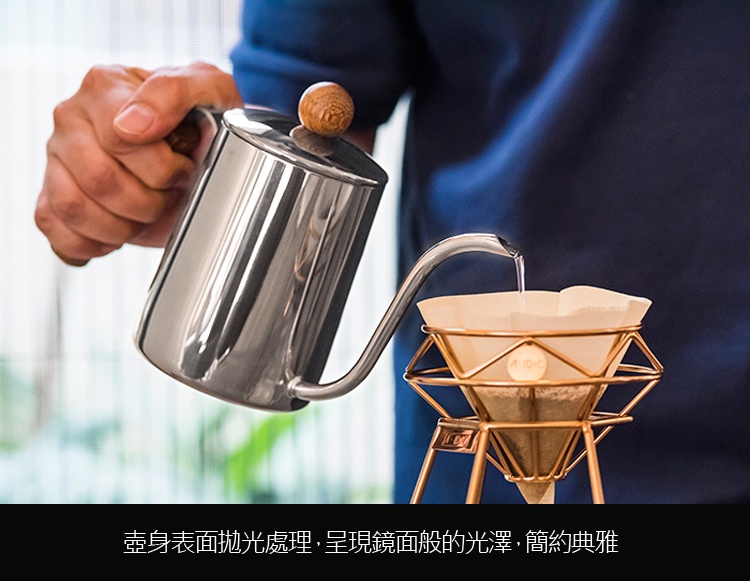 • 鏡光銀手沖細口壺 600ml+溫度計