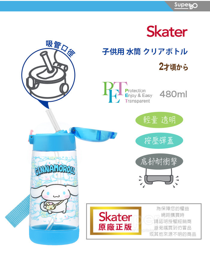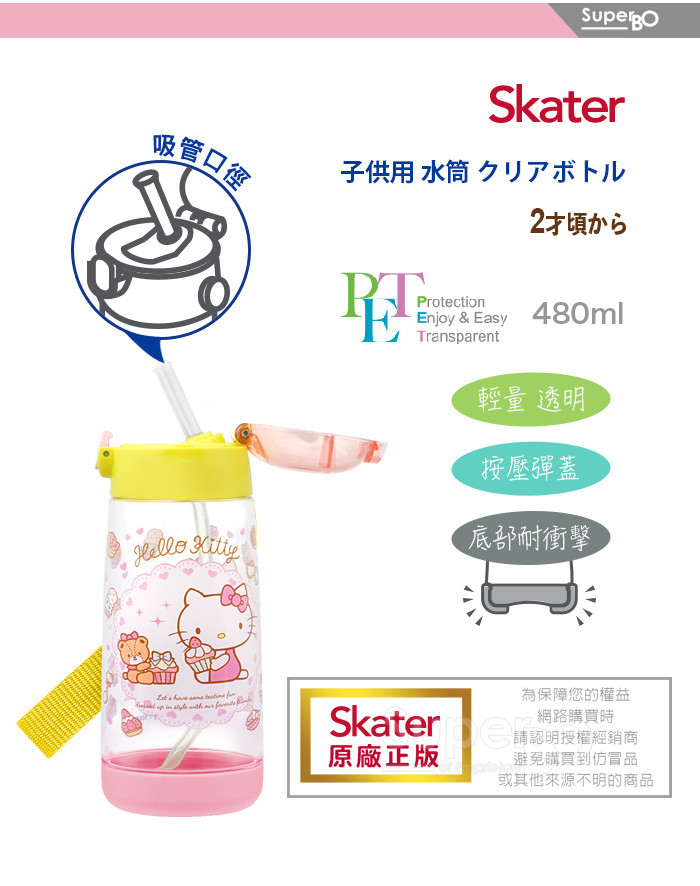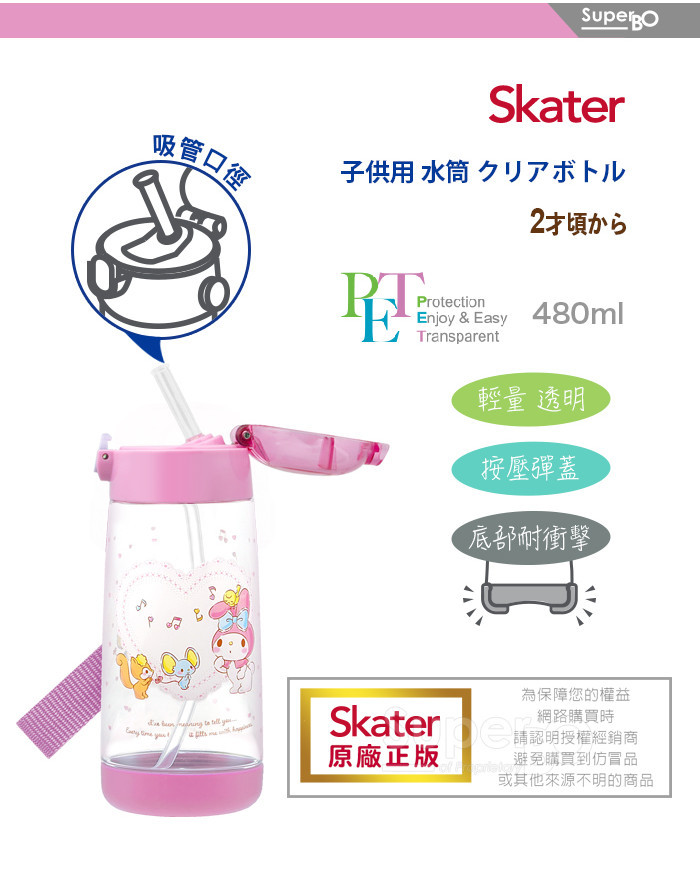 Skater 480ml PET吸管水壺|KITTY水壺|凱蒂貓水壺|美樂蒂水壺|PDSH5|透明水壺|吸管水壺