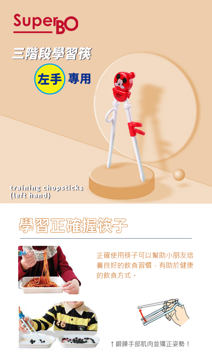 SuperBO 迪士尼區 三階段學習筷|米奇|米妮|閃電麥坤|冰雪奇緣|左手|右手|兒童筷