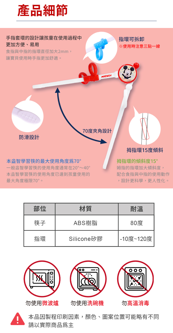 1.請勿高溫消毒,勿使用洗碗機、微波爐及紫外線消毒鍋,可能會導致產品變形或圖案剝落。