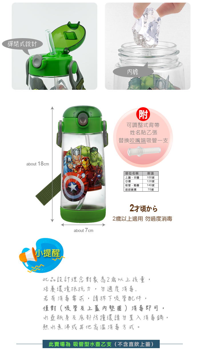 1.此品設計兩歲以上適用,請勿以任何方式過度消毒