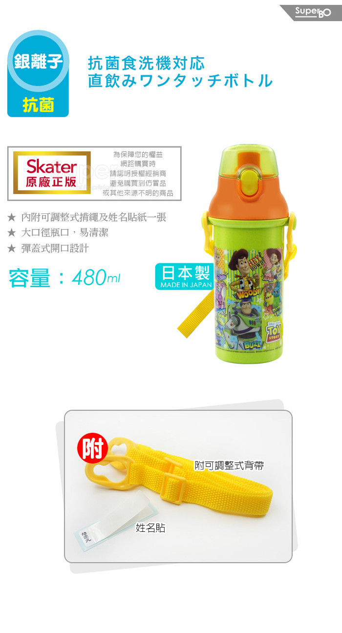 Skater 日本水壺 480ml 銀離子直飲水壺|玩具總動員水壺|PSB5SANAG|兒童水壺