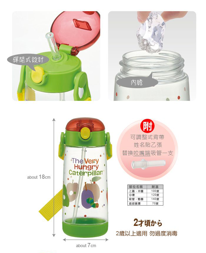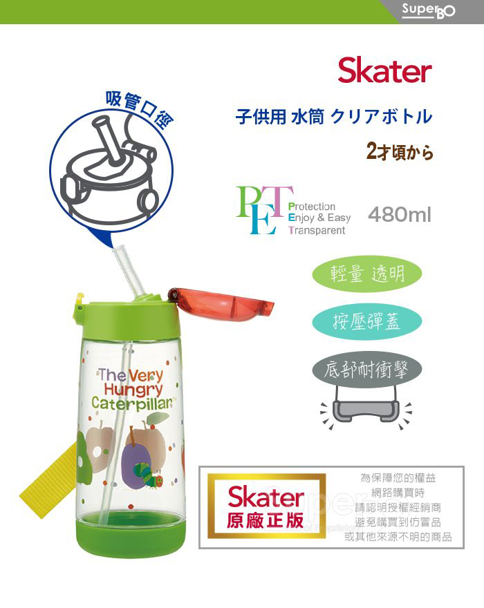 Skater 480ml PET吸管水壺|好餓的毛毛蟲水壺|毛毛蟲水壺|PDSH5|透明水壺|吸管水壺