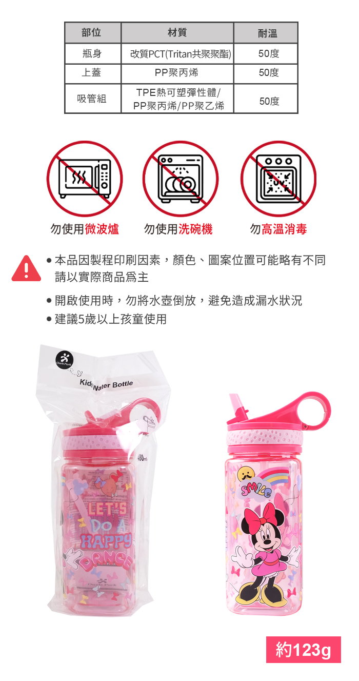 SuperBO 480ml 方形吸管水壺|米妮水壺|迪士尼水壺|米妮吸管水壺|扣環水壺|吸管水壺