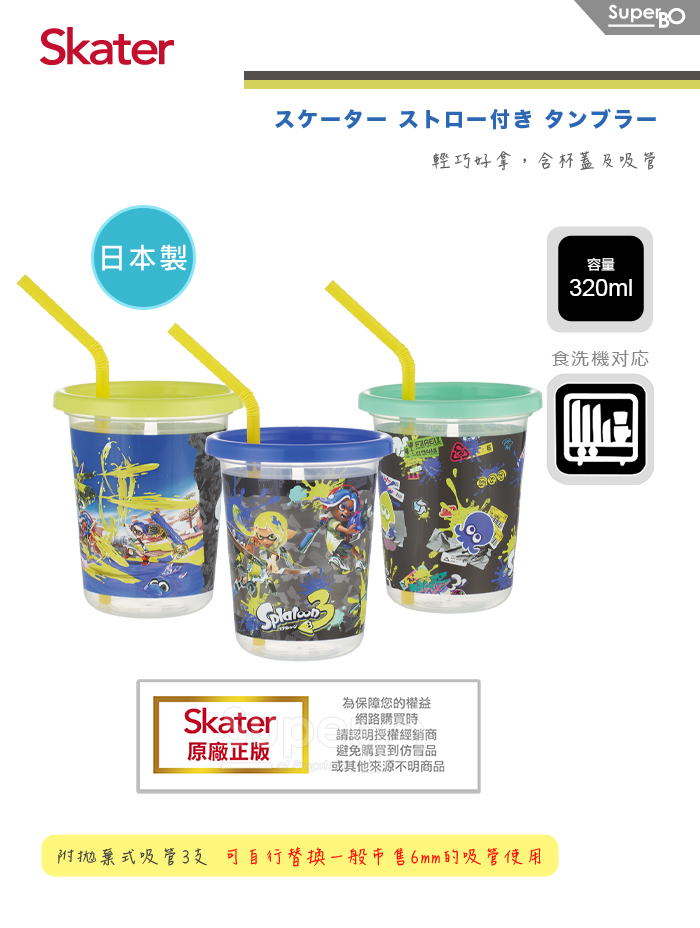Skater 日本水杯|日本製3入水杯320ml|斯普拉遁水杯|斯普拉遁|吸管水杯|露營杯
