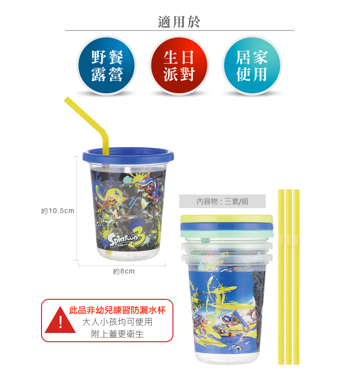 內容物:杯子(含蓋)*3、拋棄式吸管*3