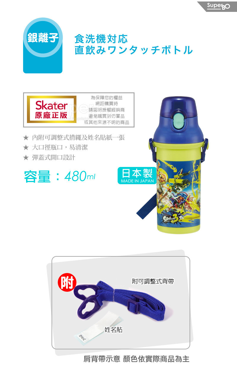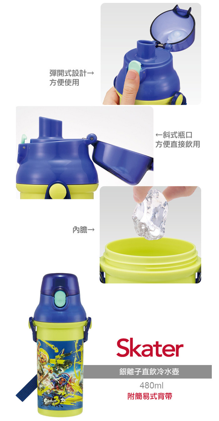 Skater 日本水壺 480ml 銀離子直飲水壺|漆彈大作戰水壺|PSB5SANAG|直飲水壺|兒童水壺