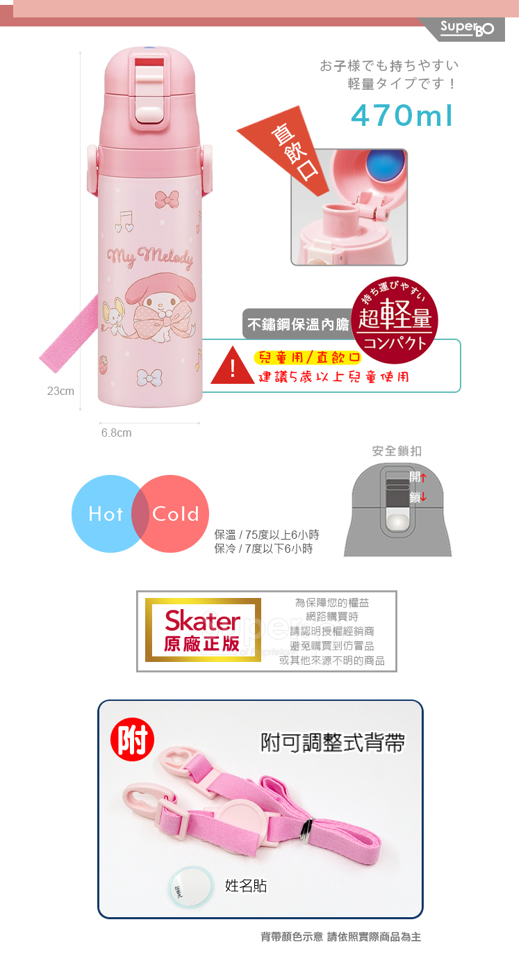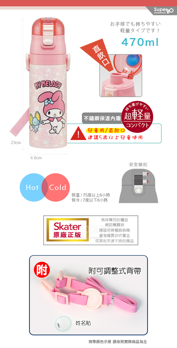 skater 470ml 不鏽鋼直飲保溫水壺|美樂蒂保溫瓶|美樂蒂水壺|SDC4|三麗鷗水壺|三麗鷗保溫瓶
