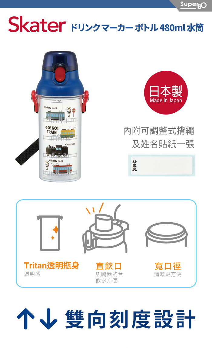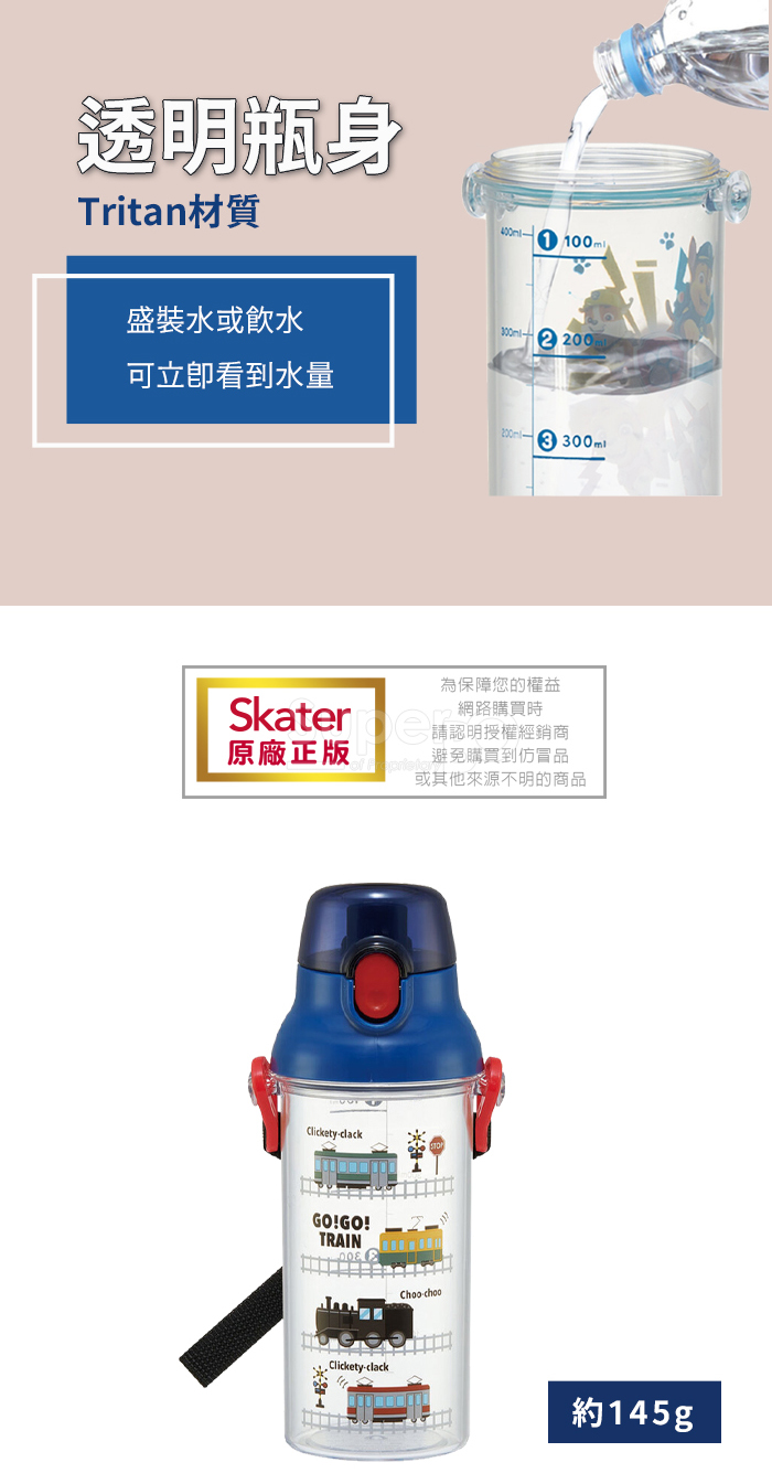 Skater 日本水壺 480ml 定量直飲水壺|鐵道火車水壺|PSB5TR|透明水壺|直飲水壺|兒童水壺