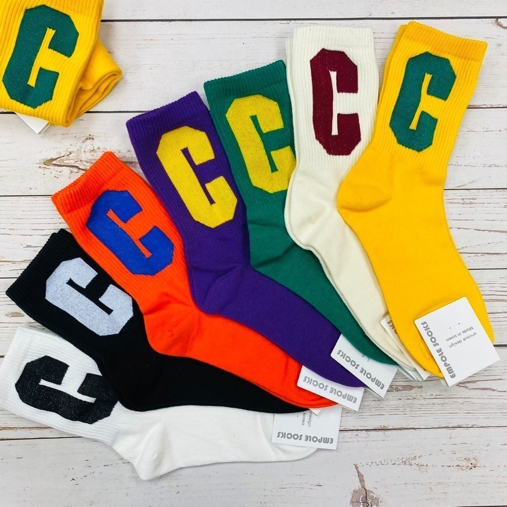 韓國襪 素色大C 潮流襪 HIP HOP襪 長襪 英文字母襪 時尚襪 素色襪