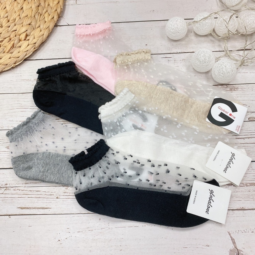 韓國襪子 透膚涼感襪 點點透明短襪 休閒襪 女襪 淑女襪