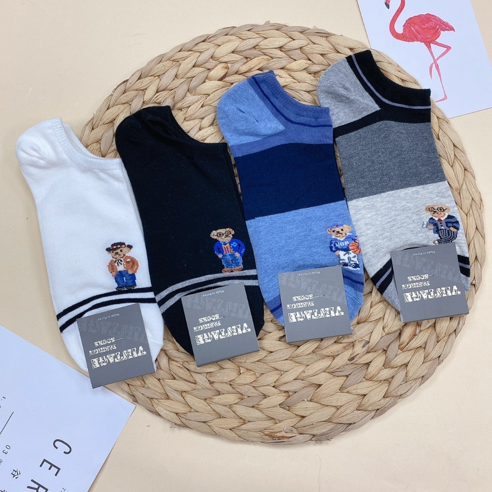 韓國男襪 船型襪 隱形襪 熊熊襪子 泰迪熊襪子 小熊襪