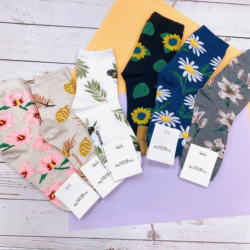 氣質小碎花 山茶花 蒲公英 櫻花 太陽花 向日葵 韓國襪子 女襪 舒適彈性襪 文青風長襪 氣質女襪