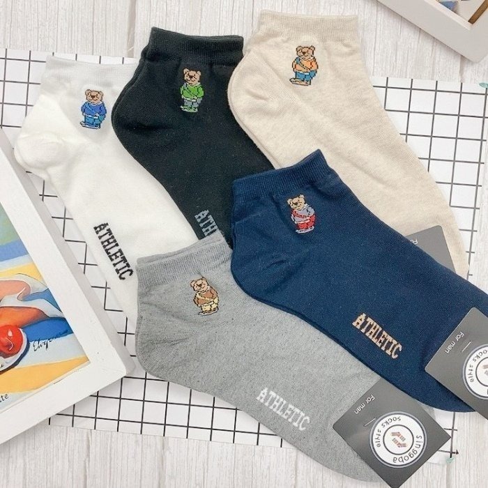 韓國男襪 短襪 熊熊襪子 泰迪熊襪子 小熊襪 韓國襪子 休閒襪