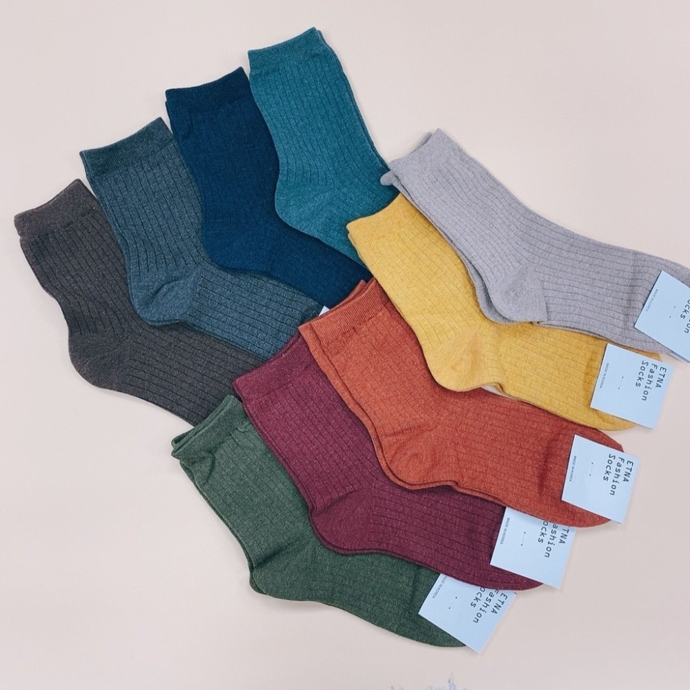 韓國 ETNA 無印風 素色簡約波紋襪子 糖果色 長筒襪 韓國襪子 素面襪子 日系簡約