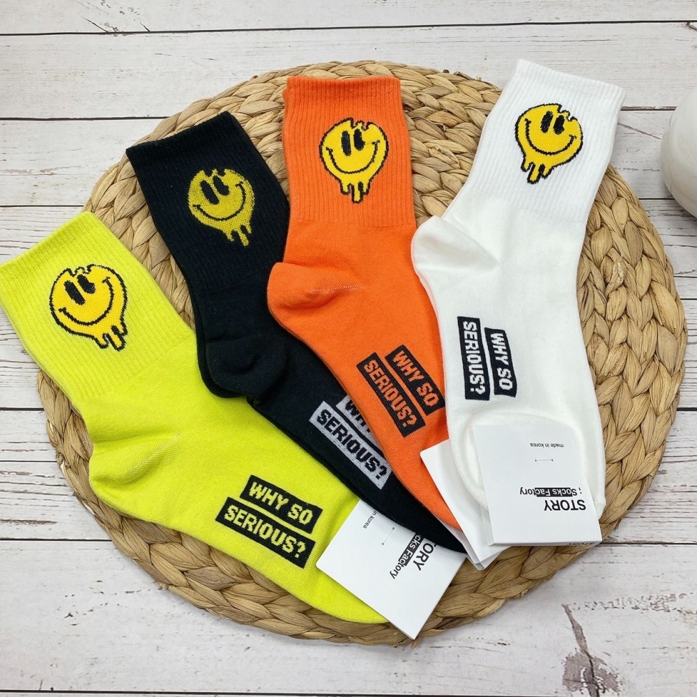 【新品】韓國襪子 融化微笑 亮色系 長筒襪 大膽玩色 螢光色 長筒襪 中性襪 潮流襪 笑臉襪