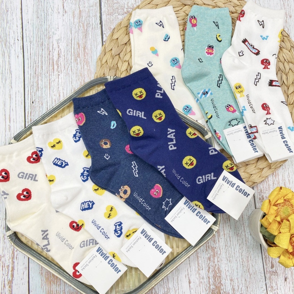 韓國襪子 電玩大作戰 女襪 長襪 笑臉 愛心 學生襪 普普風 甜點 冰淇淋 中筒襪