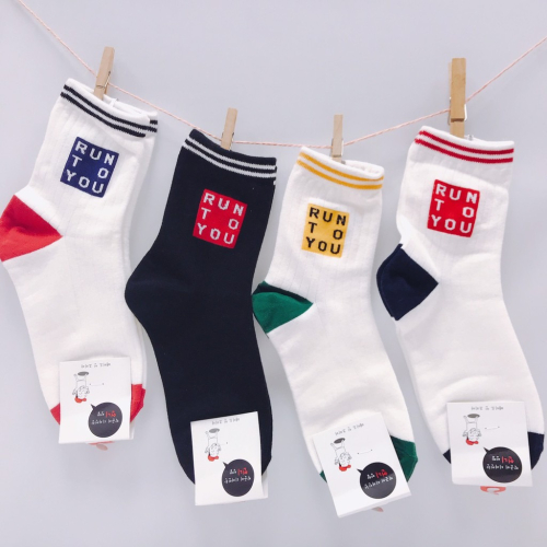 韓國襪子 RUN TO YOU 簡約英文字 個性長襪 條紋長統襪 韓國襪子 日系風