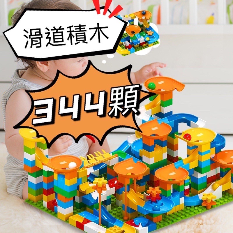 滑軌道搭配家裡大顆粒積木,一起打造全新的世界