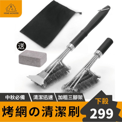 烤網清潔刷,加粗三腳架,各種角度的污漬都可以輕鬆處理 不鏽鋼刮板