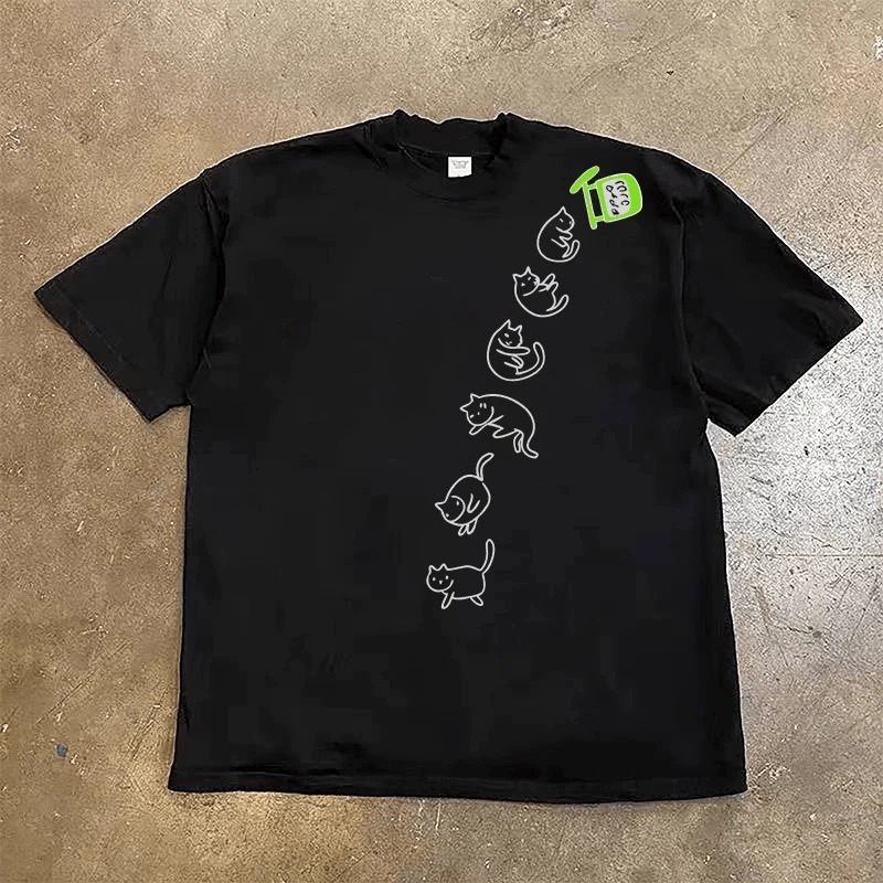 【三番雜貨屋】咚!咚!咚!喵~ 純棉上衣 短袖 寬鬆美式復古 原宿慵懶風 日系少女感