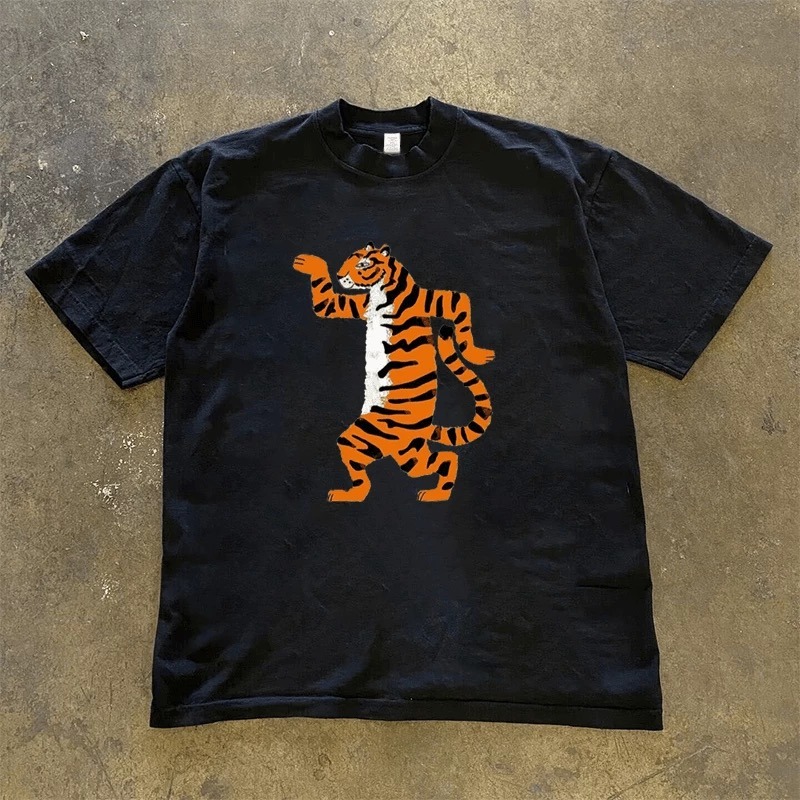 【三番雜貨屋】愛老虎油 純棉上衣 短袖 寬鬆美式復古 原宿慵懶風 日系少女感