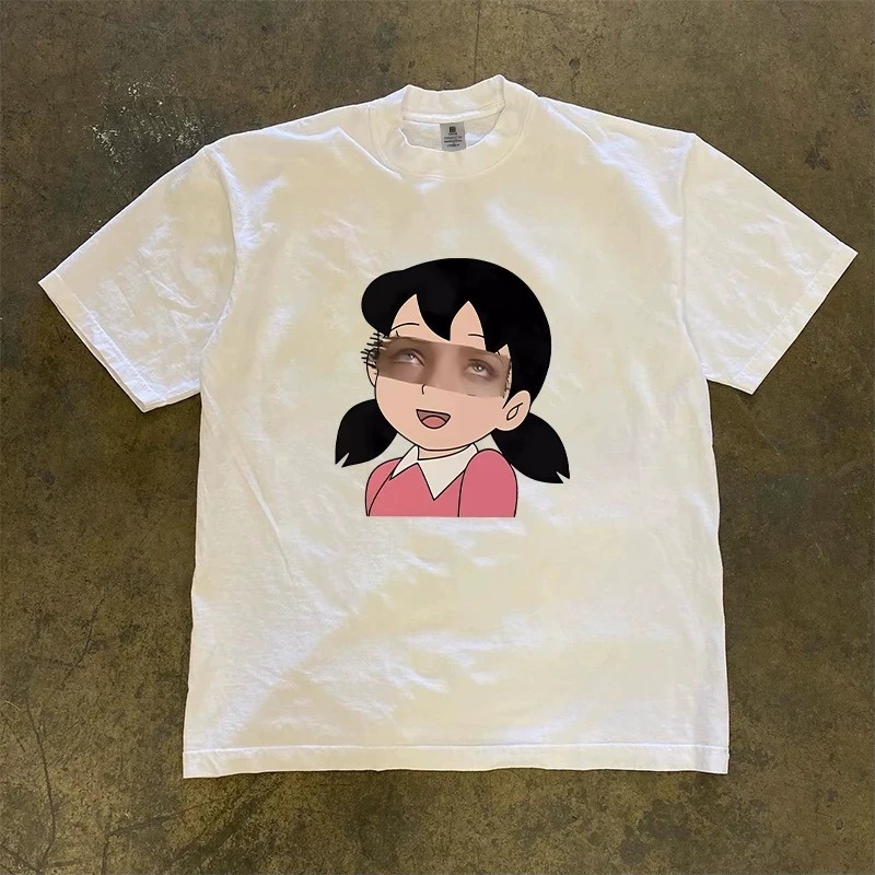【三番雜貨屋】阿嘿顏靜香 純棉上衣 短袖 寬鬆美式復古 原宿慵懶風 日系少女感