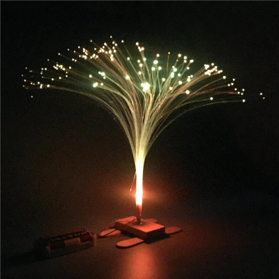 小製作套件之:光纖燈     小朋友,你知道什麼是光纖燈嗎?     光纖燈具是節能的、可以藝術造型的新型燈具. 它把高亮度的側發光塑膠光纖絲集成一束, 一端或兩端配上高亮度的光源。光纖由液體高分子化合物聚合而成,具有導光性強,省電,耐用,不發熱,無污染,可彎曲,環境適應範圍廣,使用安全等特點。     怎麼樣,現在你知道了吧,快快動手做一個屬於自己的七彩光纖燈吧!! 溫馨提示: 1、本材料中不包含兩節3號電池,請買家自備。 2、由於本系列產品都是手工製作,所以在尺寸精度上不能和機械工業化出來的產品相比。對於尺寸精度要求高的買家,請慎拍!        該系列科學小製作,不僅僅是想去做幾款結構性的小製作玩具,更大的希望是提供給小朋友們一個平臺似的基礎,小朋友們可以在此小製作的基礎上進行更多的創新設計! 組裝步驟: 一:電池盒連接二級管。注:線路正負極之分,正極接燈泡長腳,負極接短腳,開關一側切勿接線,以防短路。 二:安裝底座,二極體放至木棍上 三:由上至下插入部分導管 四:插入光纖燈