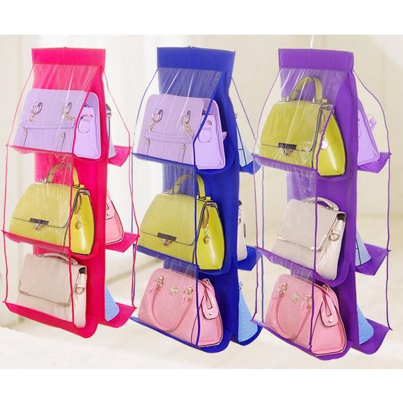 【夜市王】雙面六層包包掛袋 六口手提包收納整理袋 懸掛式多層透視防塵 79元