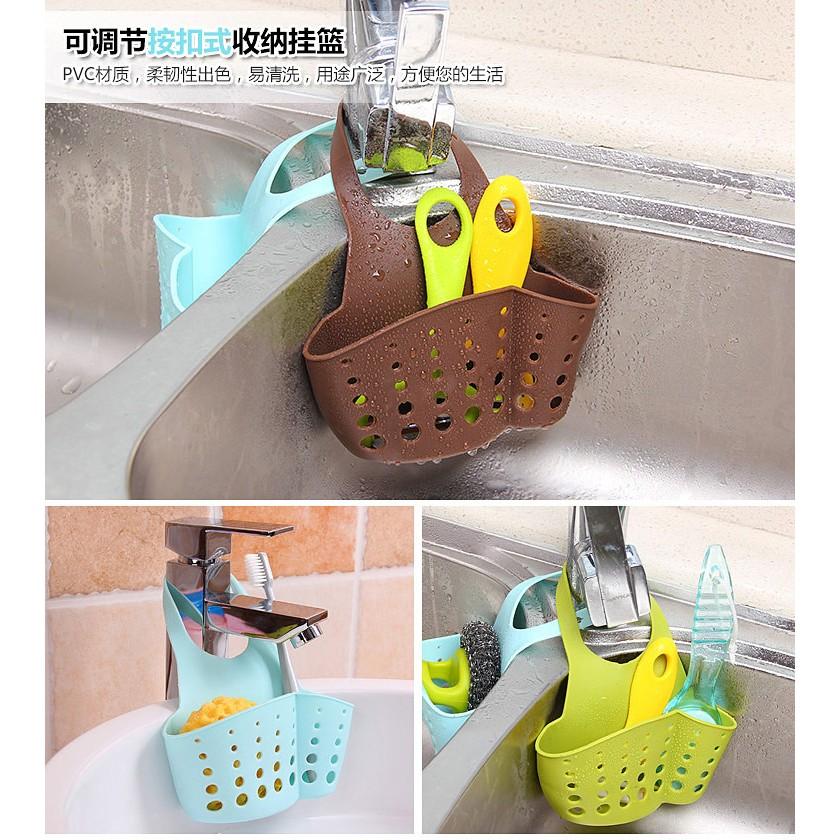 【夜市王】廚房水槽海綿收納掛籃 可調節按扣式瀝水架 水龍頭收納掛袋 29元