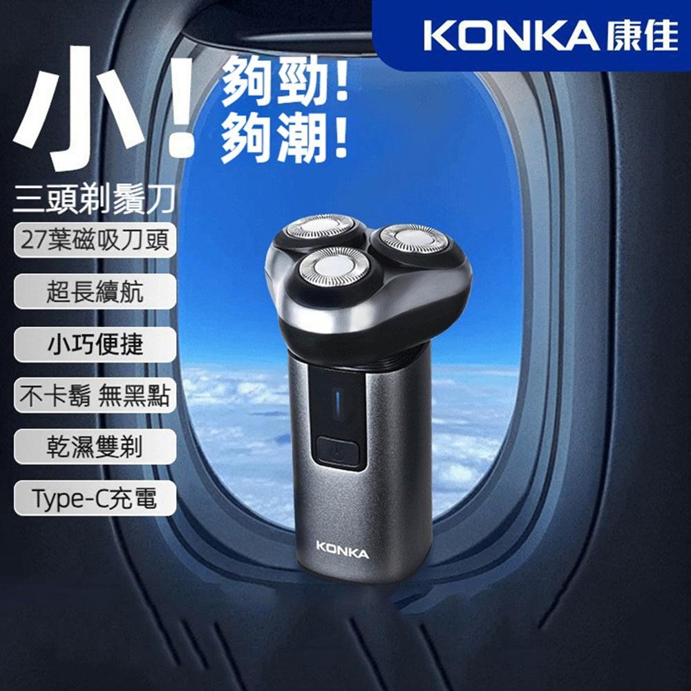 KONKA康佳 小型三頭電動刮鬍刀 TypeC充電 IPX6防水 27葉磁吸刀頭 KTXD-0803-T