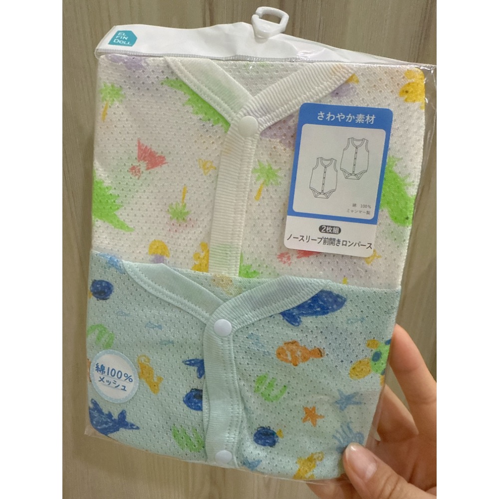 ☆ 日本西松屋直送 100% 純棉 網眼涼感 手繪風海洋與森林 包屁衣兩件組 ☆