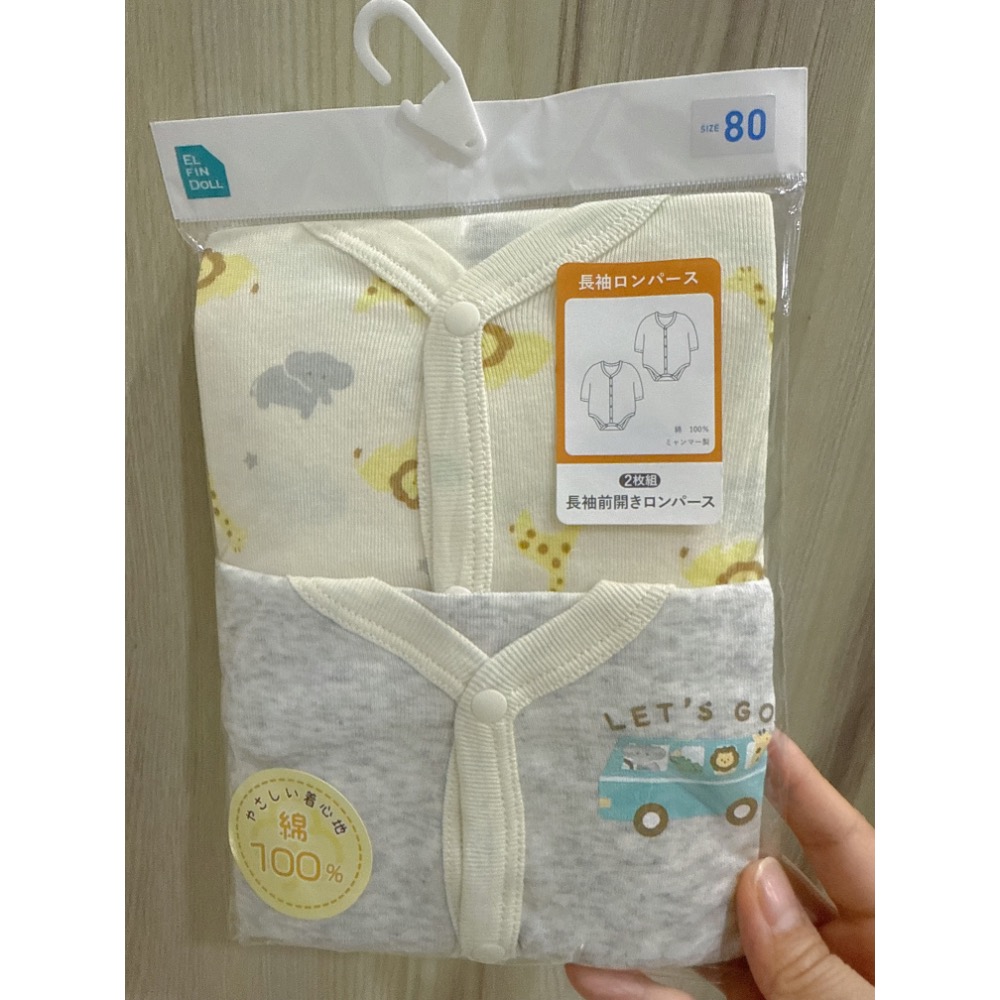 ☆ 日本西松屋直送 100% 純棉 動物們郊遊趣 長袖包屁衣兩件組 ☆