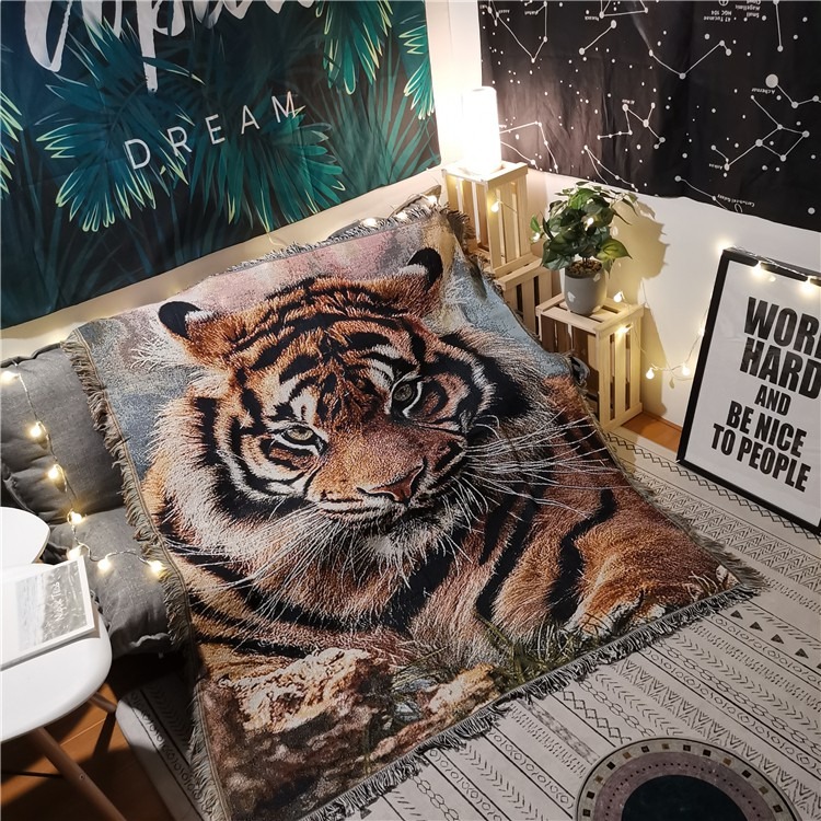 台灣出貨 虎頭沙發毯 美式鄉村北歐掛毯裝飾毯 流蘇毯 摩洛哥風 老虎仿逼真地毯 老虎頭 休閒毯威武莊嚴裝飾背景布發墊沙