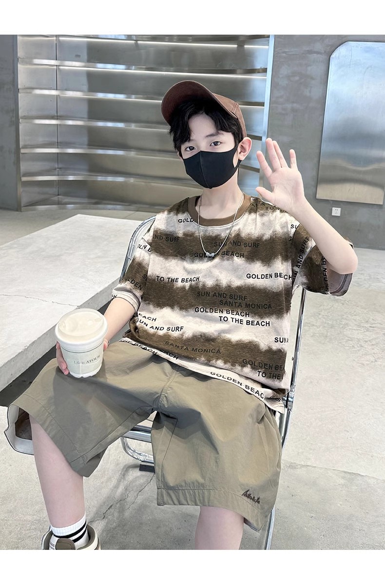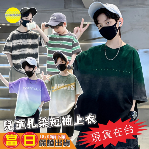 KiDSPORT🚀現貨🚀男童女童個性扎染短袖上衣2025春裝夏裝帥氣百搭個性化藝術風兒童中大童上衣潮款