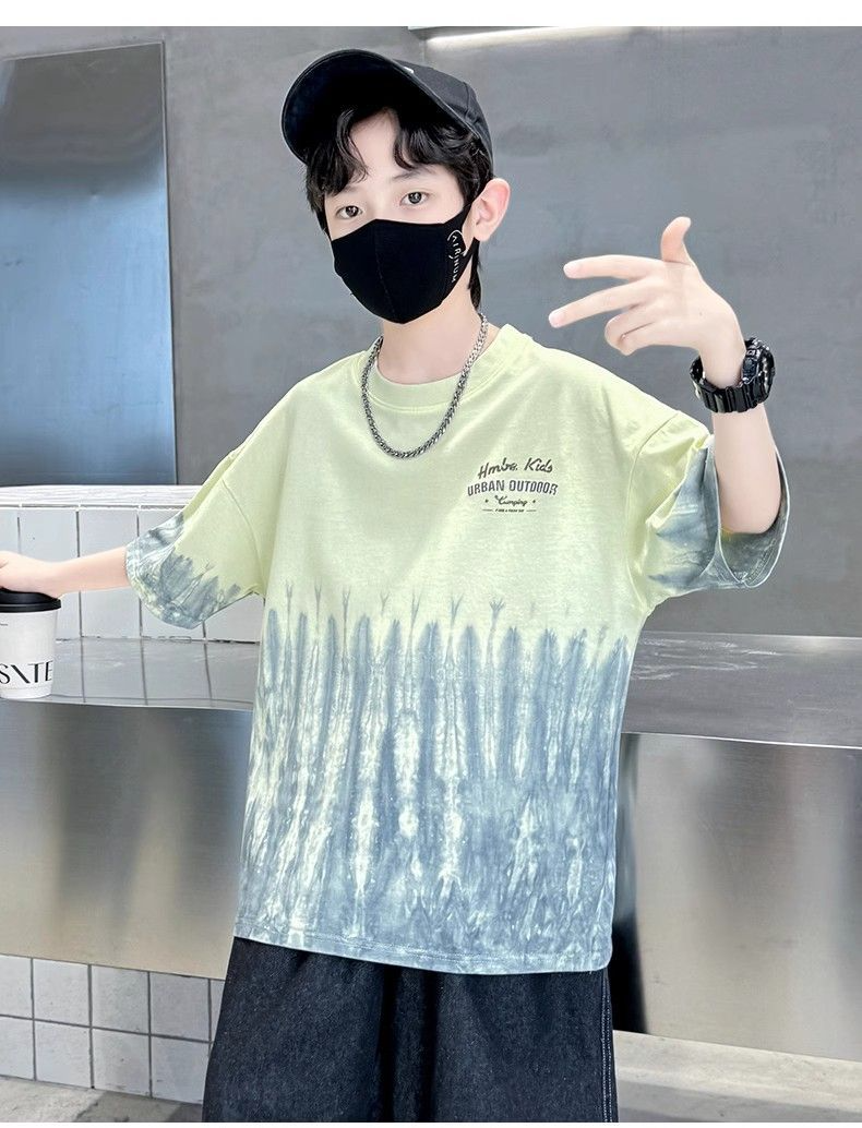 KiDSPORT🚀現貨🚀男童女童個性扎染短袖上衣2025春裝夏裝帥氣百搭個性化藝術風兒童中大童上衣潮款