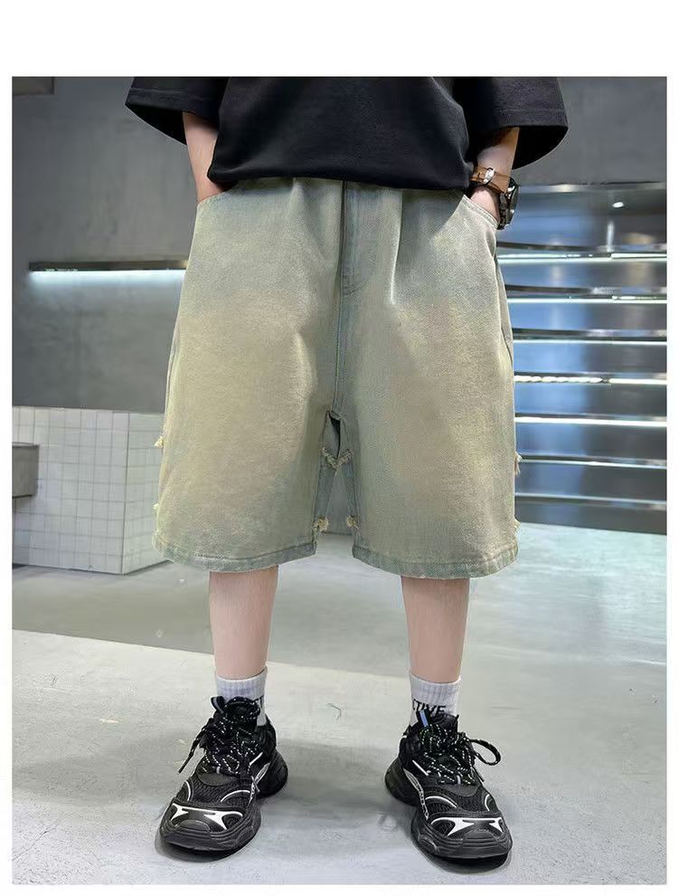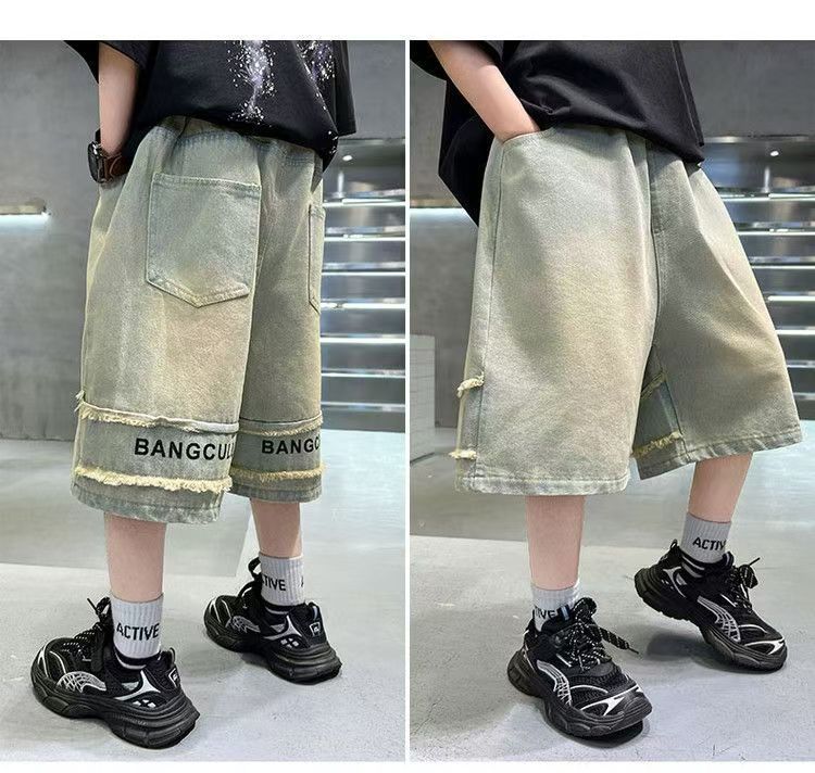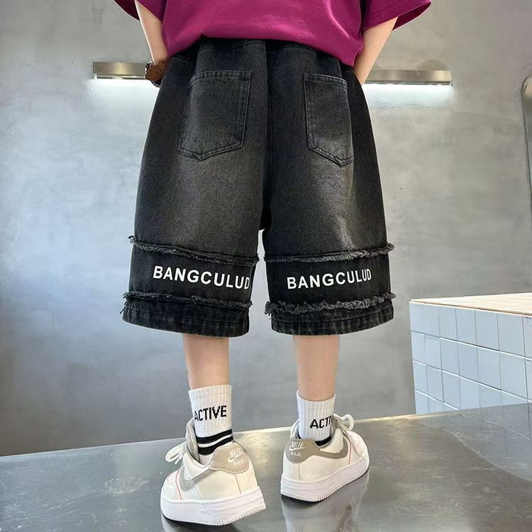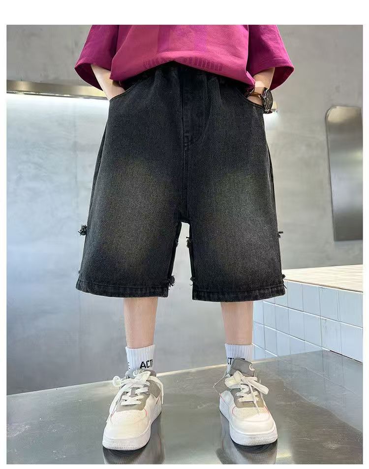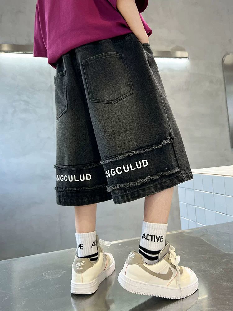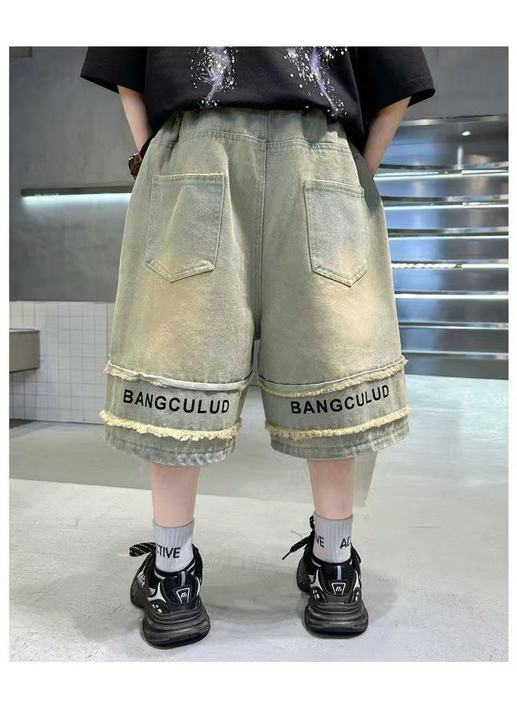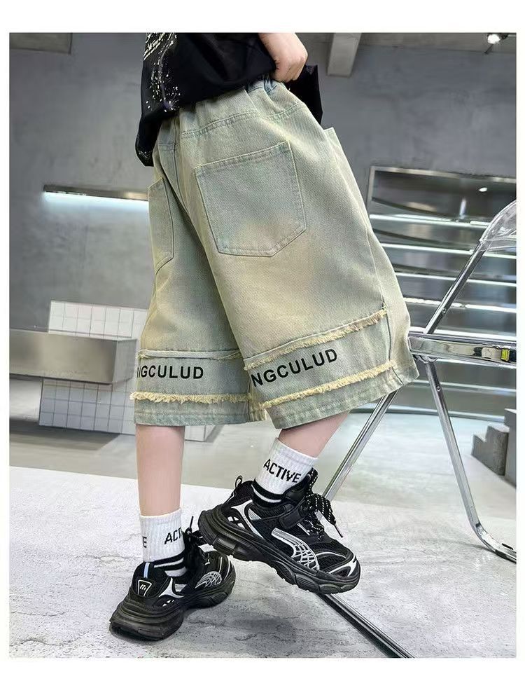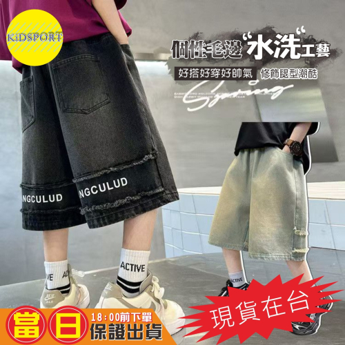 🚀現貨🚀男童女童牛仔短褲五分褲2025春夏裝帥氣街舞服裝褲百搭水洗牛仔後毛邊設計短褲