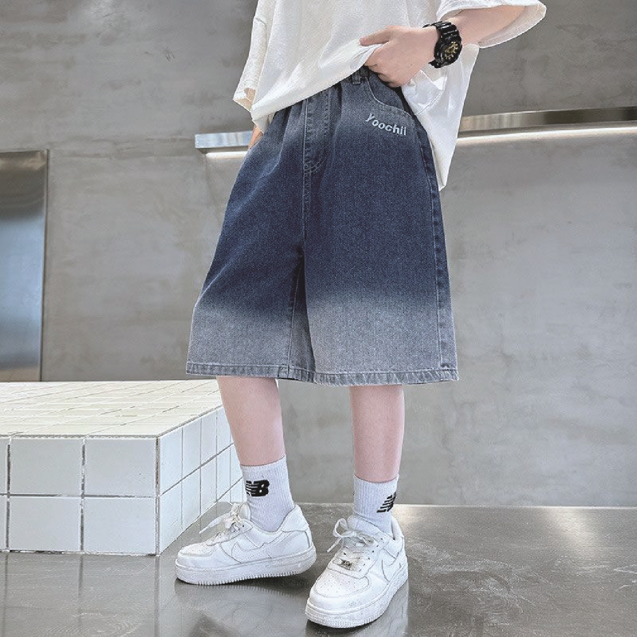 男童女童牛仔短褲五分褲2025春夏裝帥氣街舞服裝褲百搭漸變砂洗牛仔短褲中大童短褲