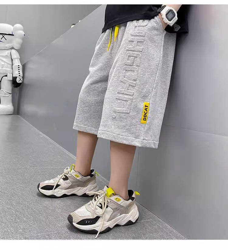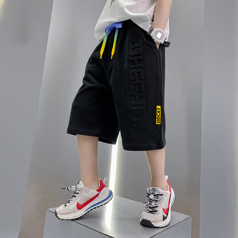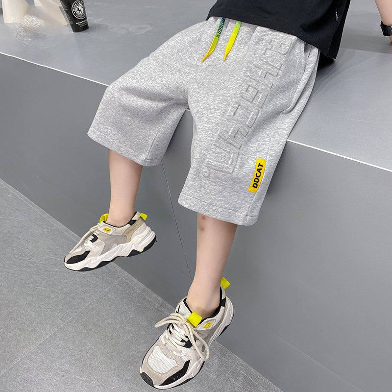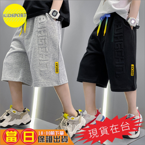 兒童男童女童夏款舒適五分褲短褲鬆緊褲壓印立體字母口袋運動褲2025夏裝兒童中大童