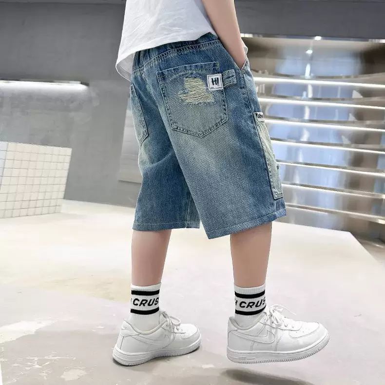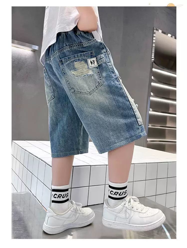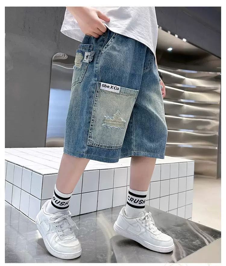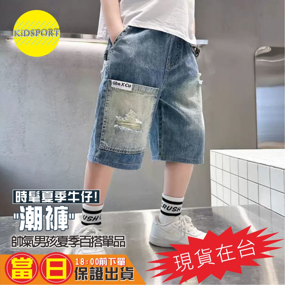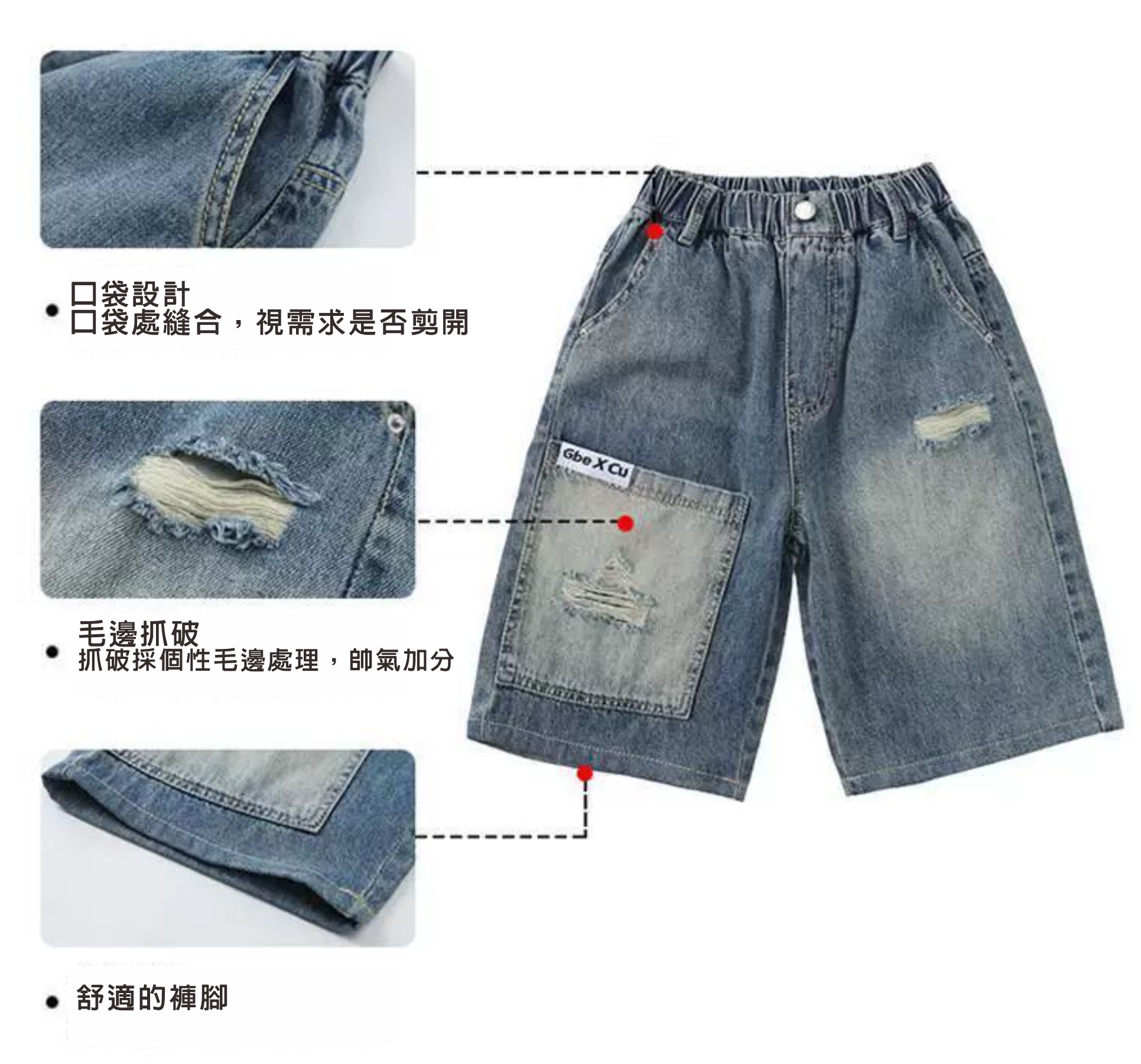 男童女童牛仔短褲2025春夏裝帥氣街舞服裝褲百搭前擺加口袋抓破牛仔短褲中大童短褲