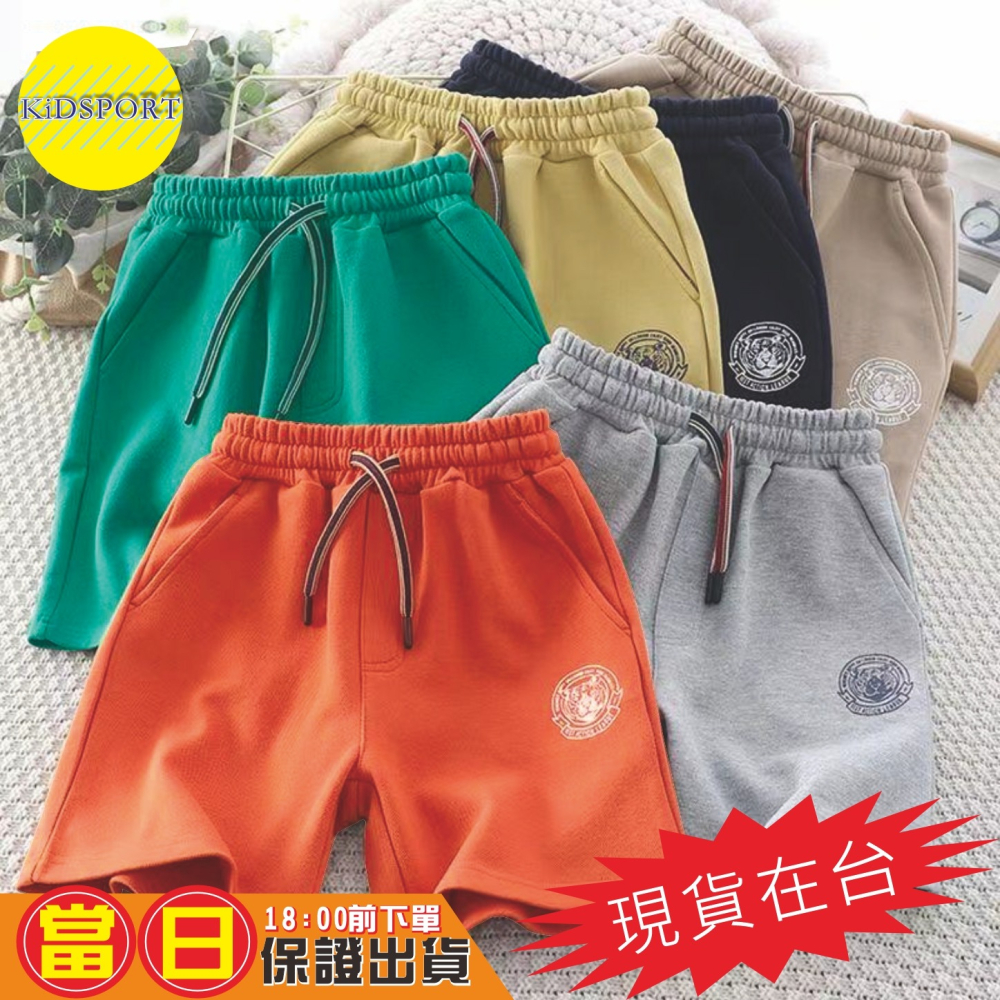 KiDSPORT【蝦皮代開發票】🚀現貨🚀兒童男童女童新款腰頭綁繩五分褲2025年老虎印花夏裝帥氣薄款棉織混合棉褲兒童短褲
