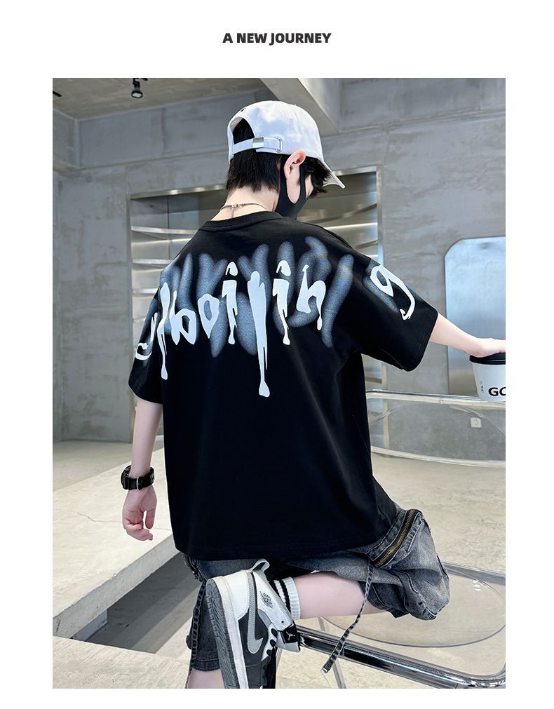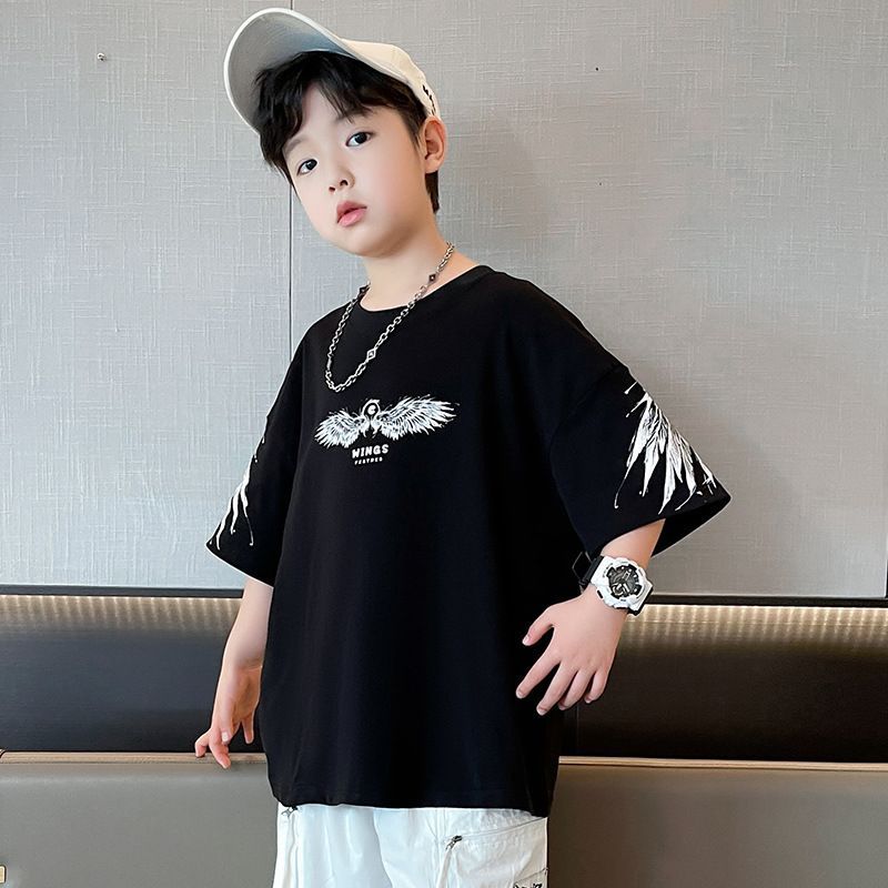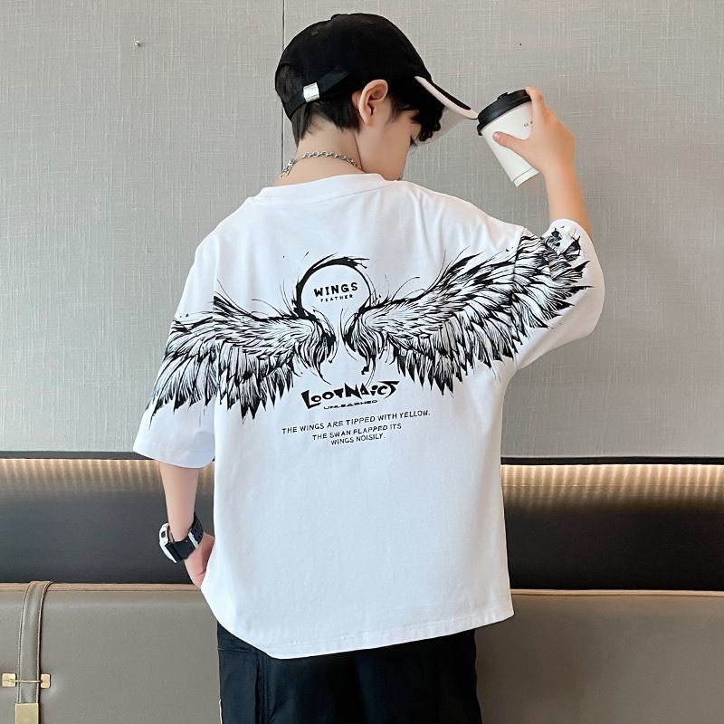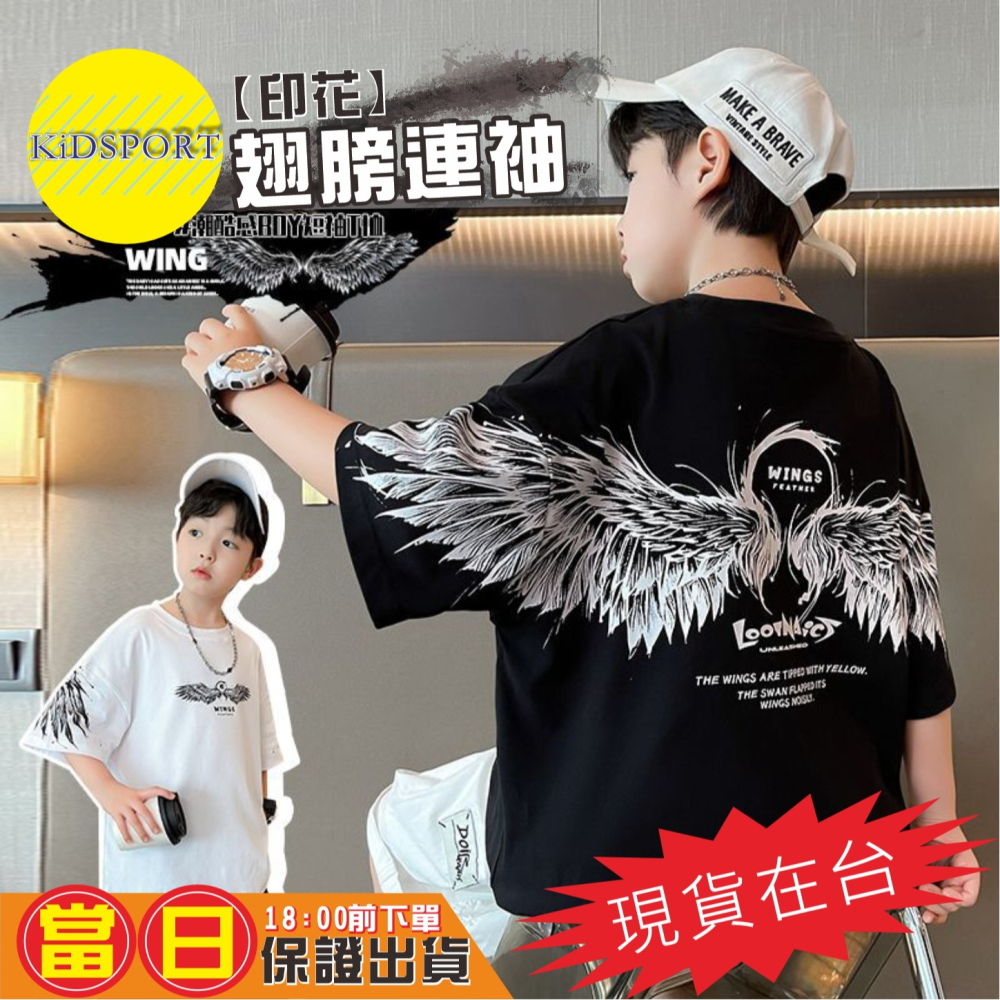 KiDSPORT🚀現貨🚀男童女童短袖上衣後背連袖翅膀印花2025夏裝帥氣百搭兒童中大童上衣潮款