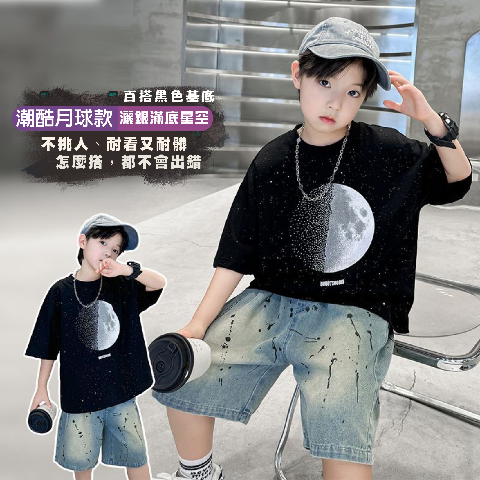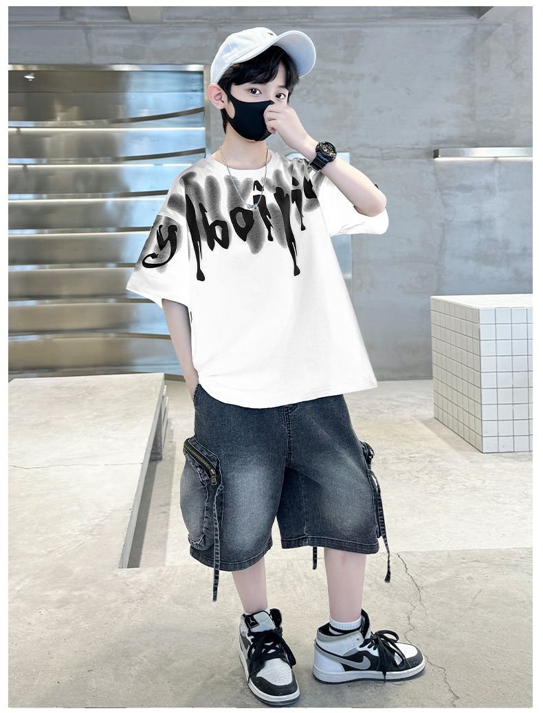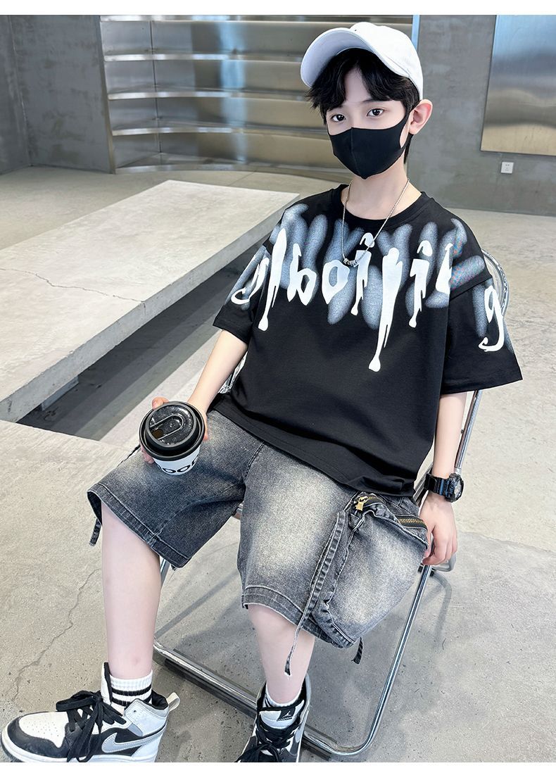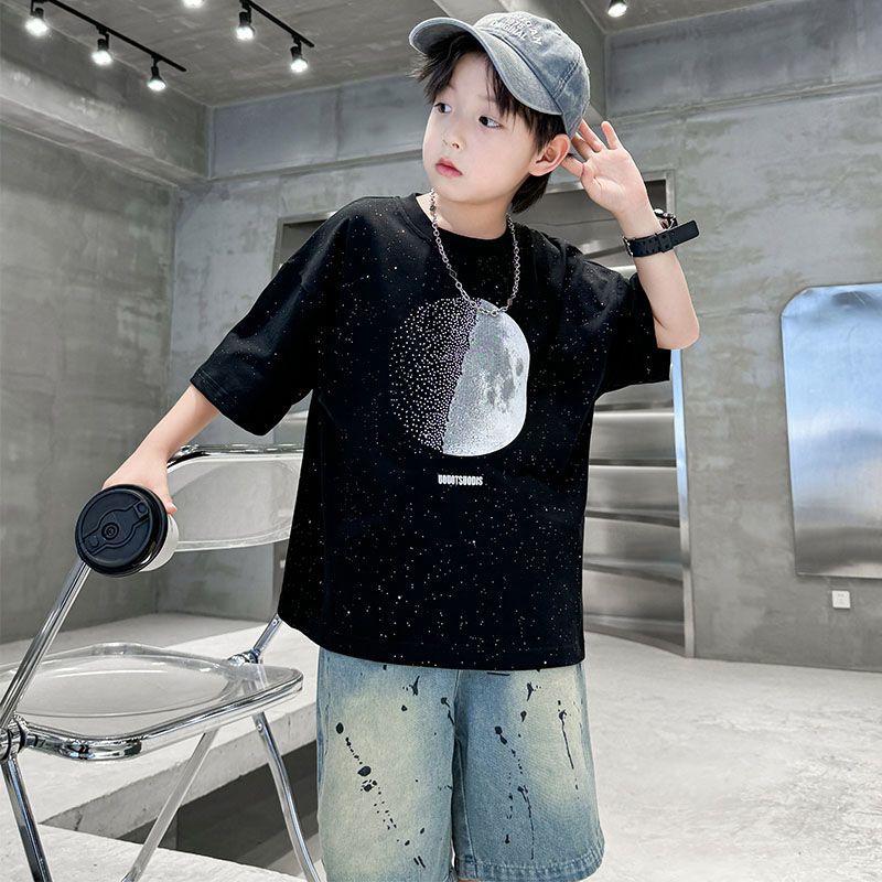 KiDSPORT🚀現貨🚀男童女童短袖上衣後背連袖翅膀印花2025夏裝帥氣百搭兒童中大童上衣潮款
