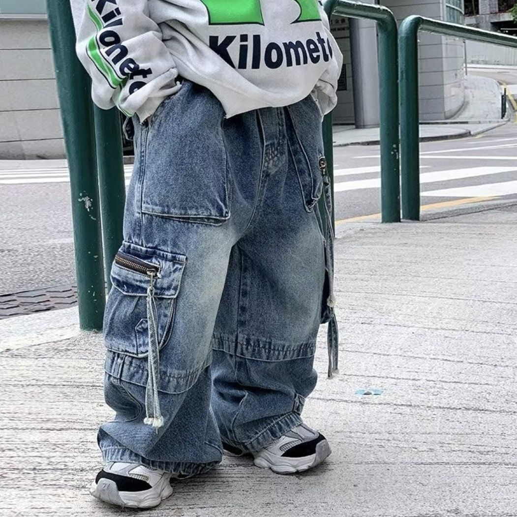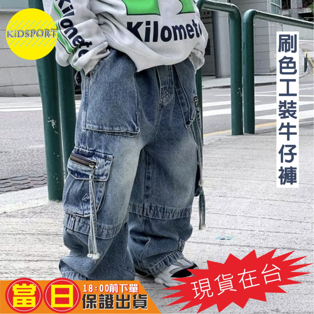 L兒童男童女童水洗刷色風工裝牛仔褲2025春秋裝帥氣百搭兒童中大童長褲